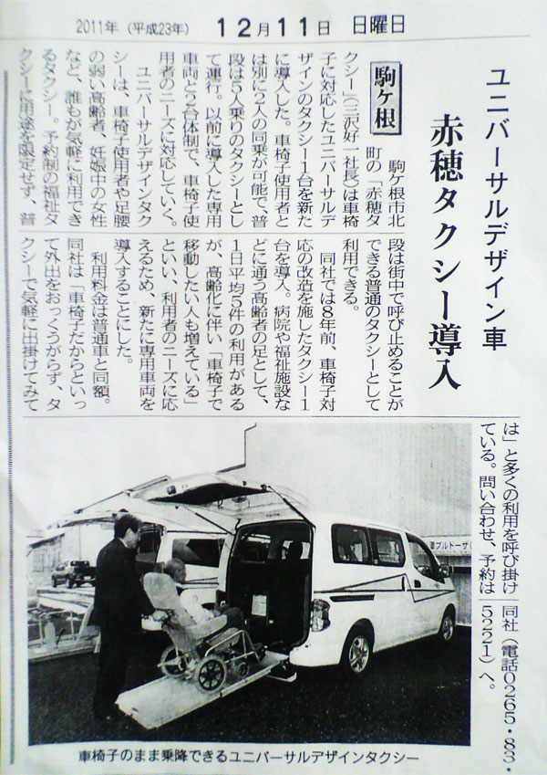 12月11日付けの長野日報さんに、赤穂タクシーの記事を載せていただきました。