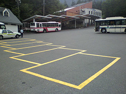 7月30日、丸八タクシーさんと赤穂タクシーで、駒ヶ岳ロープウェイしらび平駅構内のタクシー駐車場の枠線を引き直してきました。